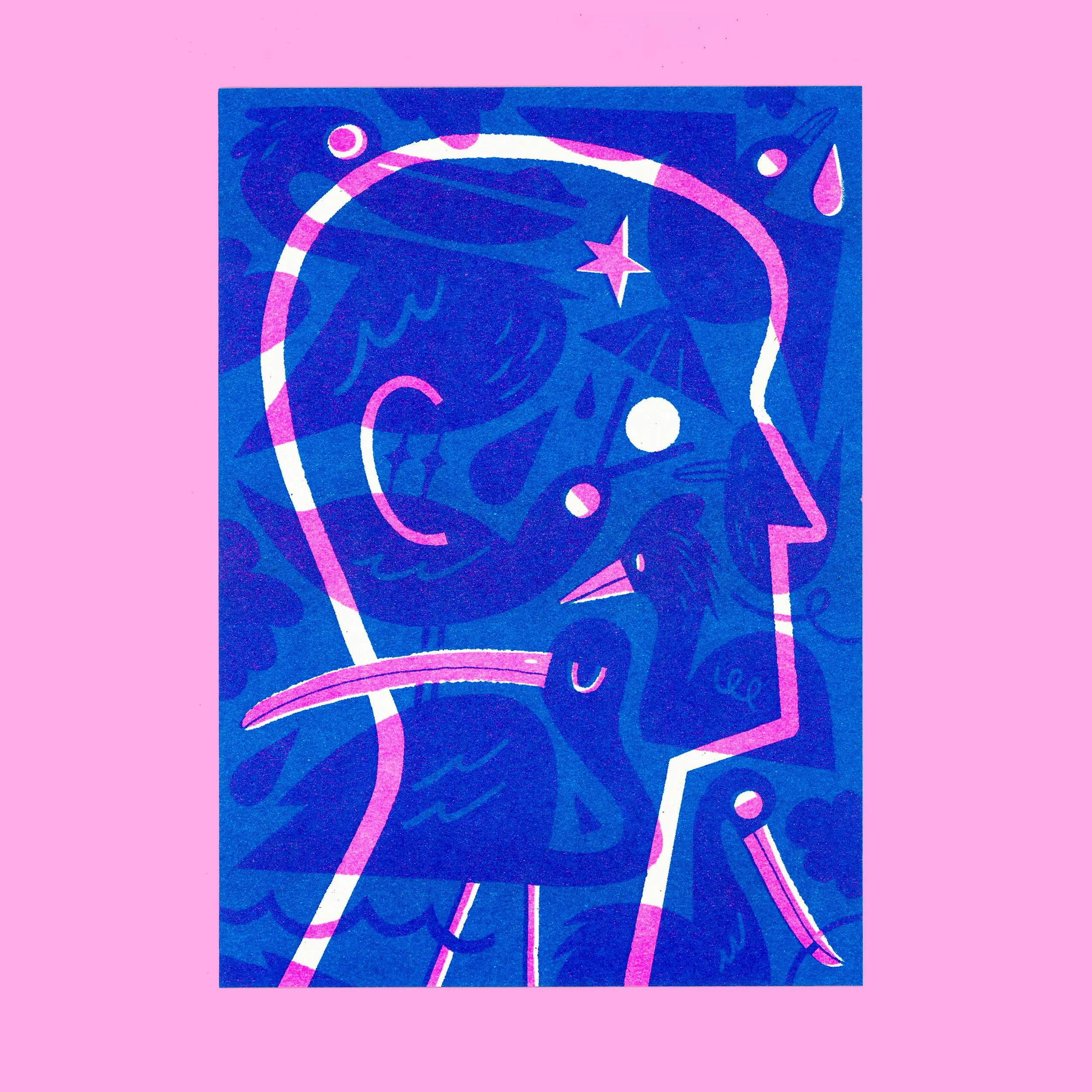 Risograph Print for the GSL Hopeline fundraising event. The GSL Hopeline is a community art project and interactive audio experience that invites people to share stories, memories, and hopes for the Great Salt Lake through a phone line and a mobile phone booth.