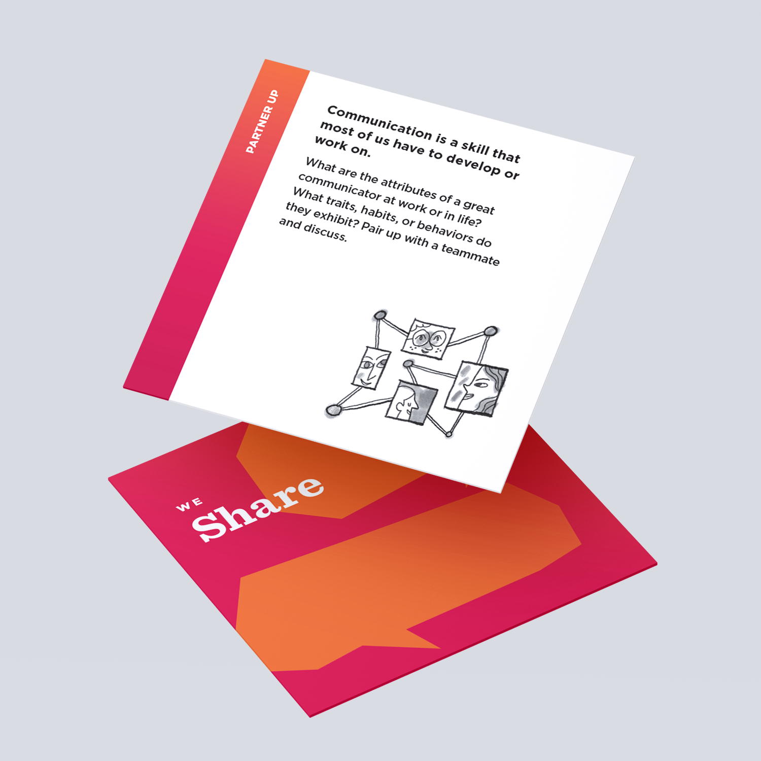 A card deck created for O.C. Tanner to support team huddles and help employees live the company’s new Leadership Principles.